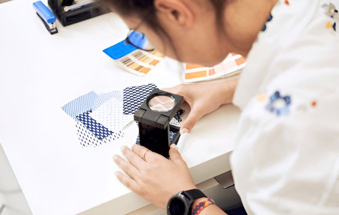 Hays Sourcing inspects each dyed lot for shade consistency using advanced machinery and skilled staff. We utilize sophisticated testing methods for store-specific approvals and partner with Macbeth Color Solutions, leveraging their Light Box with CWF-D64-TL84-UV lights for precise color matching.